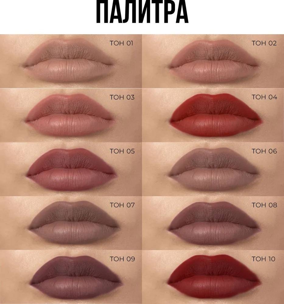 С суперстойкими матовыми помадами "Lip Tattoo" вы создадите тот самый трендовый образ с объемными бархатными губами.