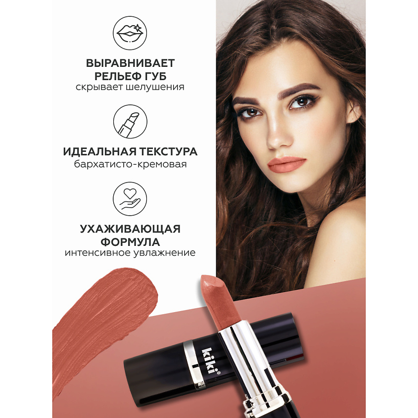 Помада для губ "Velvet" – это гармоничное сочетание идеального покрытия и насыщенного стойкого цвета. Она легко наносится, придает губам мягкость и бархатистость.