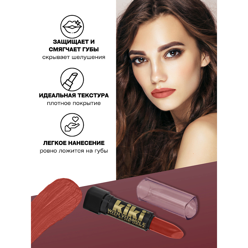Помада для губ "Aloe and Vit E" имеет насыщенный цвет и глянцевый блеск, обладает плотным покрытием. Губная помада дарит интенсивный глубокий, чувственный цвет.