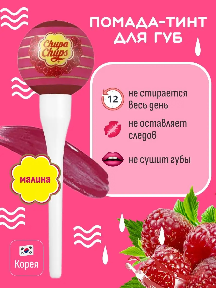 Это жидкая помада-тинт со стойким пигментом. Она окрашивает кожу губ и держится более 9 часов. Тинты "Chupa Chups Lip Locker" работают по принципу: "твои губы, только ярче!".