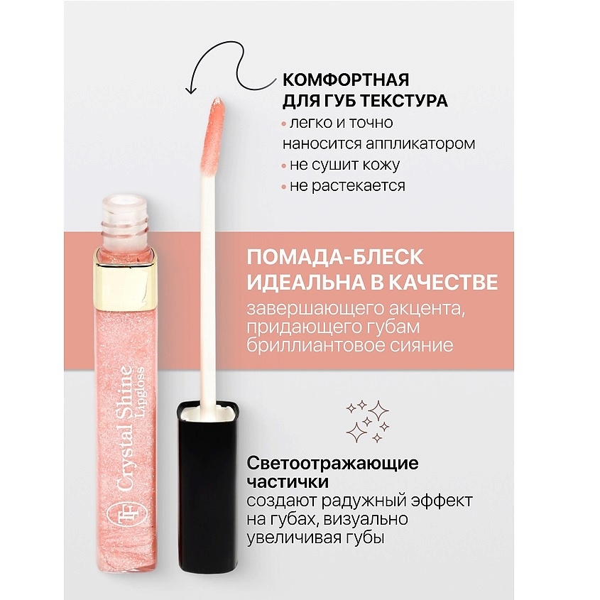 Помада-блеск идеальна в качестве завершающего акцента, придающего губам бриллиантовое сияние.Комфортная для губ текстура, легко и точно наносится аппликатором, не сушит кожу и не растекается.
