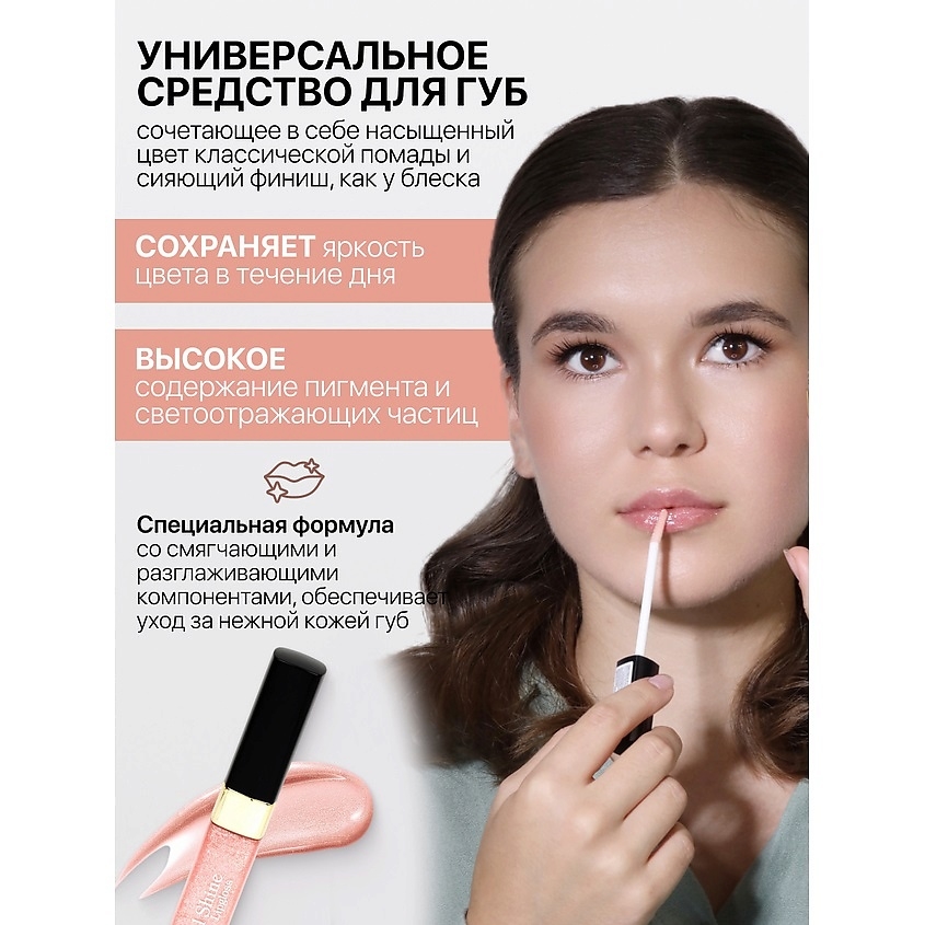 Универсальное средство для губ, сочетающее в себе насыщенный цвет классической помады и сияющий финиш, как у блеска.
