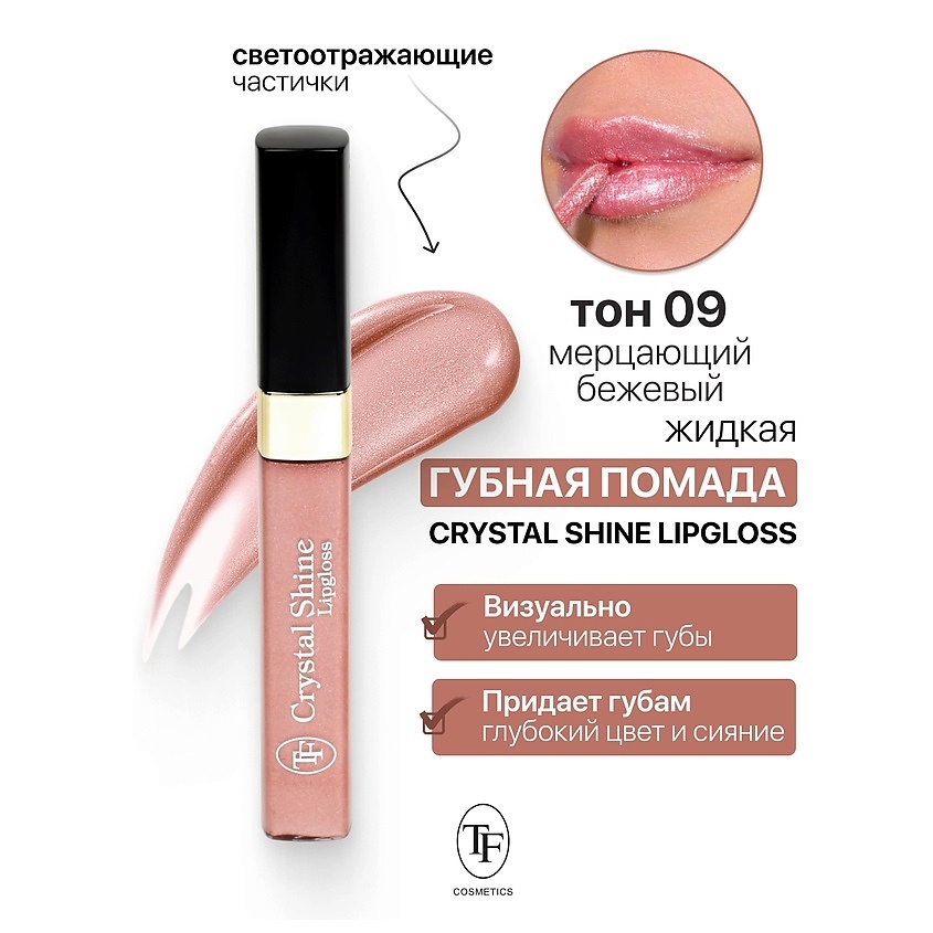 Жидкая помада для губ "Crystal Shine Lip Gloss" тон: 09, мерцающий бежевый