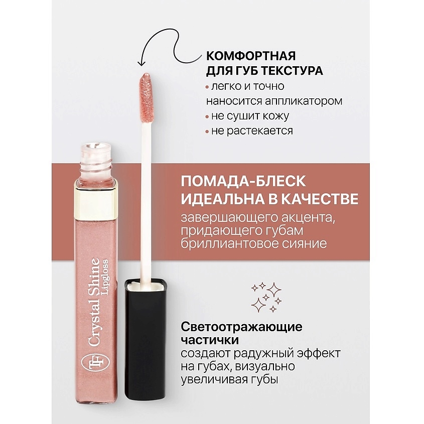 Помада-блеск идеальна в качестве завершающего акцента, придающего губам бриллиантовое сияние.Комфортная для губ текстура, легко и точно наносится аппликатором, не сушит кожу и не растекается.