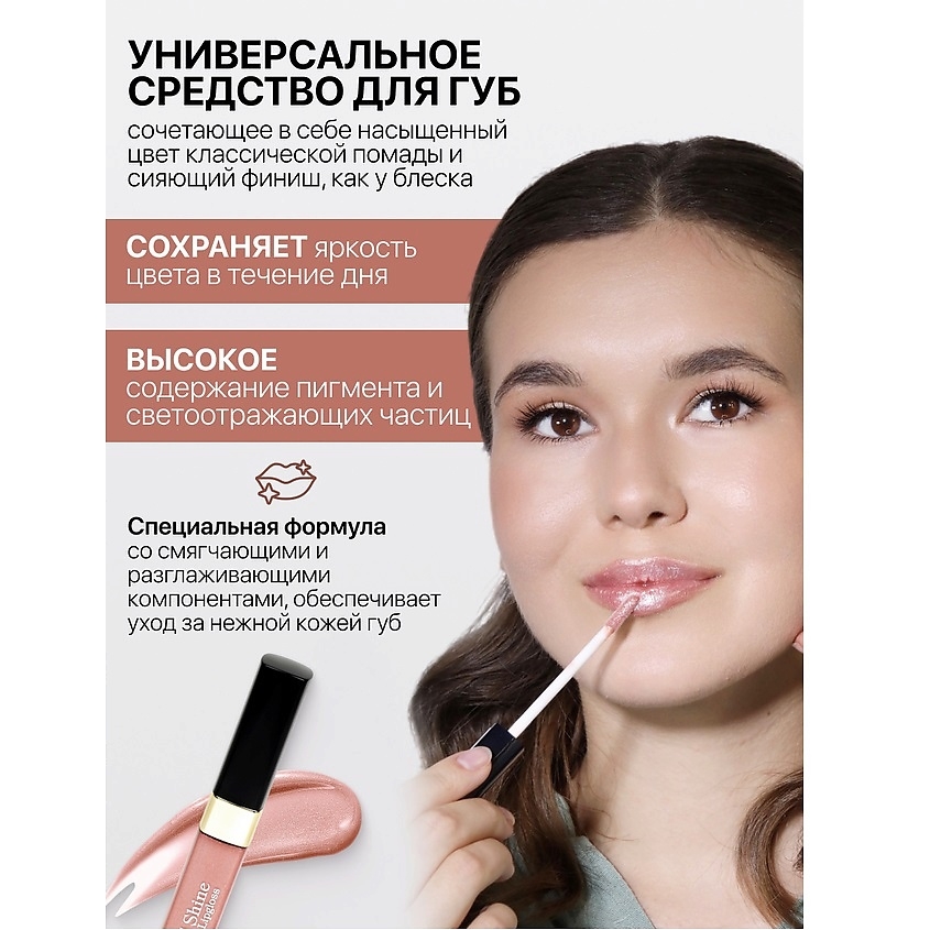Универсальное средство для губ, сочетающее в себе насыщенный цвет классической помады и сияющий финиш, как у блеска.