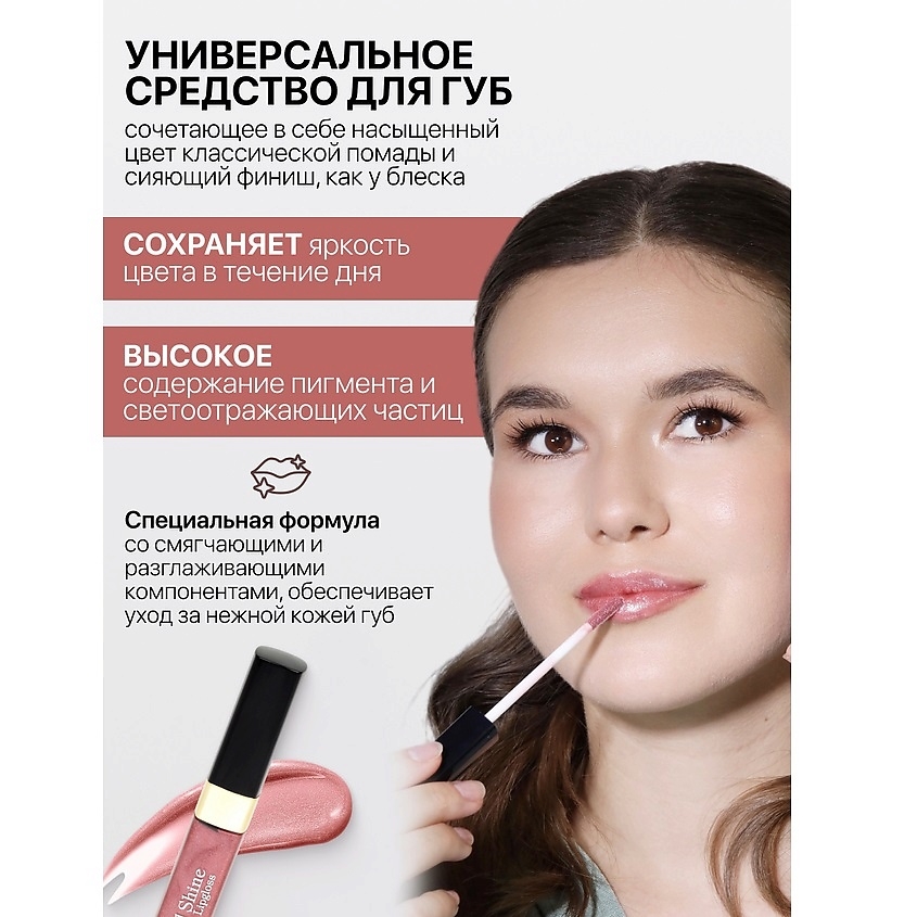 Универсальное средство для губ, сочетающее в себе насыщенный цвет классической помады и сияющий финиш, как у блеска.