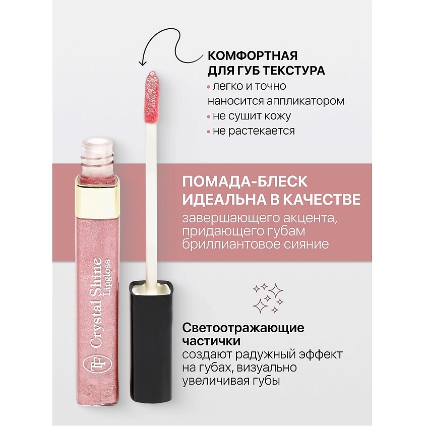 Помада-блеск идеальна в качестве завершающего акцента, придающего губам бриллиантовое сияние.Комфортная для губ текстура, легко и точно наносится аппликатором, не сушит кожу и не растекается.