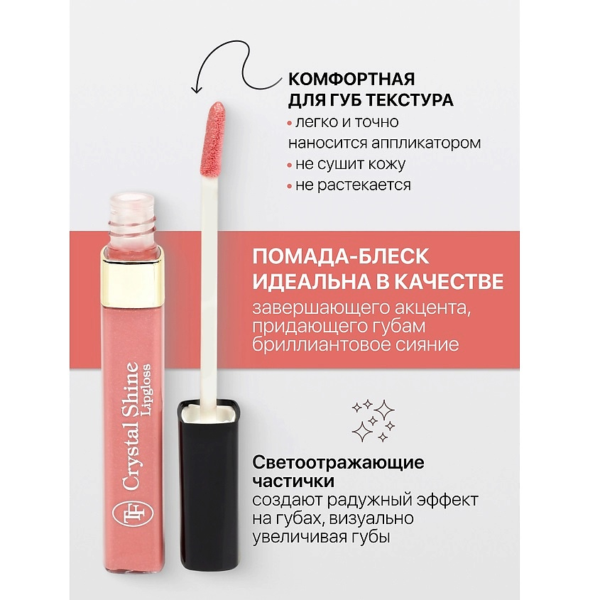 Помада-блеск идеальна в качестве завершающего акцента, придающего губам бриллиантовое сияние.Комфортная для губ текстура, легко и точно наносится аппликатором, не сушит кожу и не растекается.