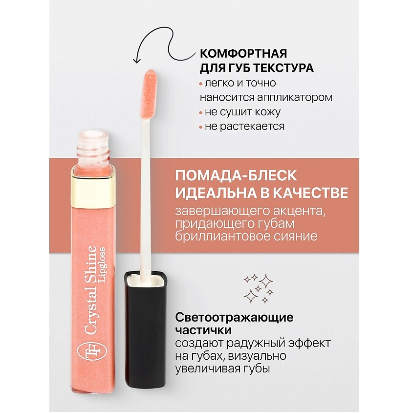 Помада-блеск идеальна в качестве завершающего акцента, придающего губам бриллиантовое сияние.Комфортная для губ текстура, легко и точно наносится аппликатором, не сушит кожу и не растекается.