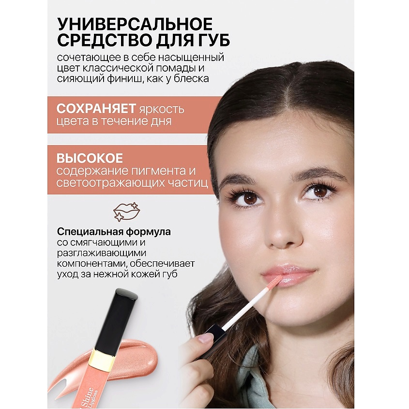 Универсальное средство для губ, сочетающее в себе насыщенный цвет классической помады и сияющий финиш, как у блеска.