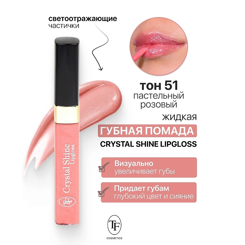 Жидкая помада для губ "Crystal Shine Lip Gloss" тон: 51, пастельный розовый