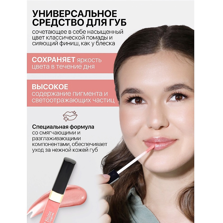 Универсальное средство для губ, сочетающее в себе насыщенный цвет классической помады и сияющий финиш, как у блеска.