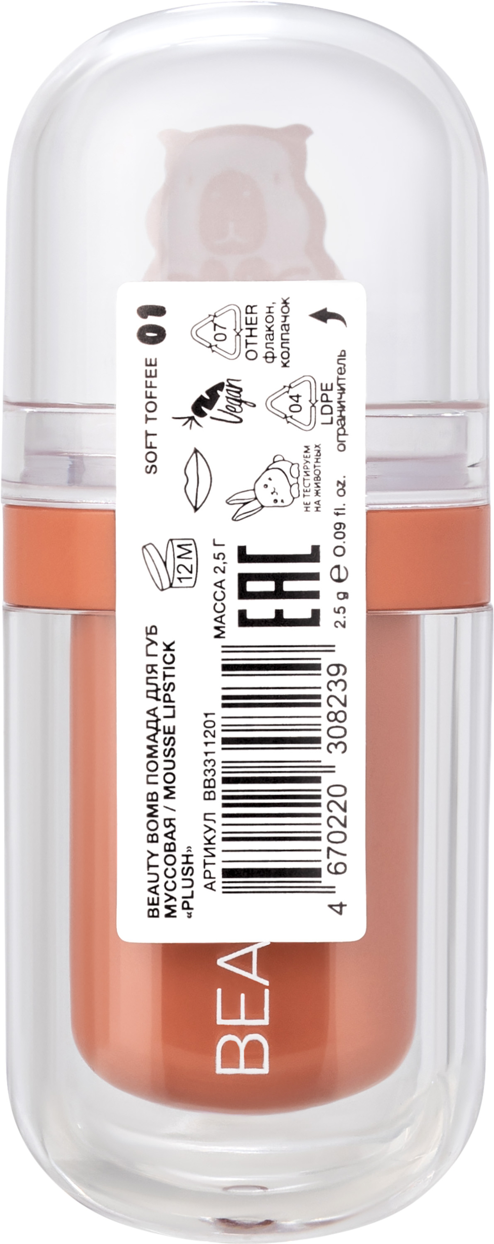 Помада для губ "Plush" тон: 01, soft toffee