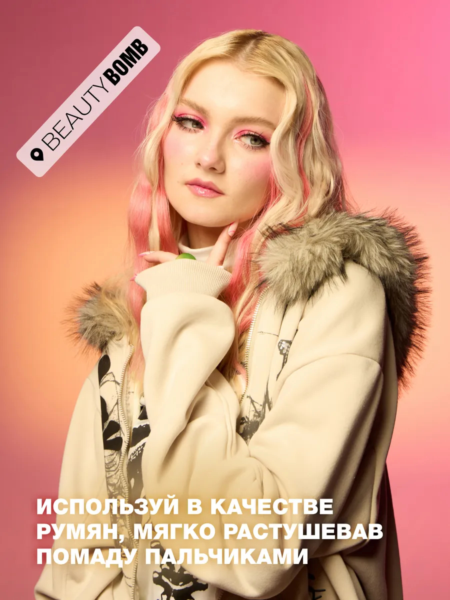 Нанесите в качестве помады или румян. Для более мягкого эффекта растушуйте пальцем или кистью.Состав