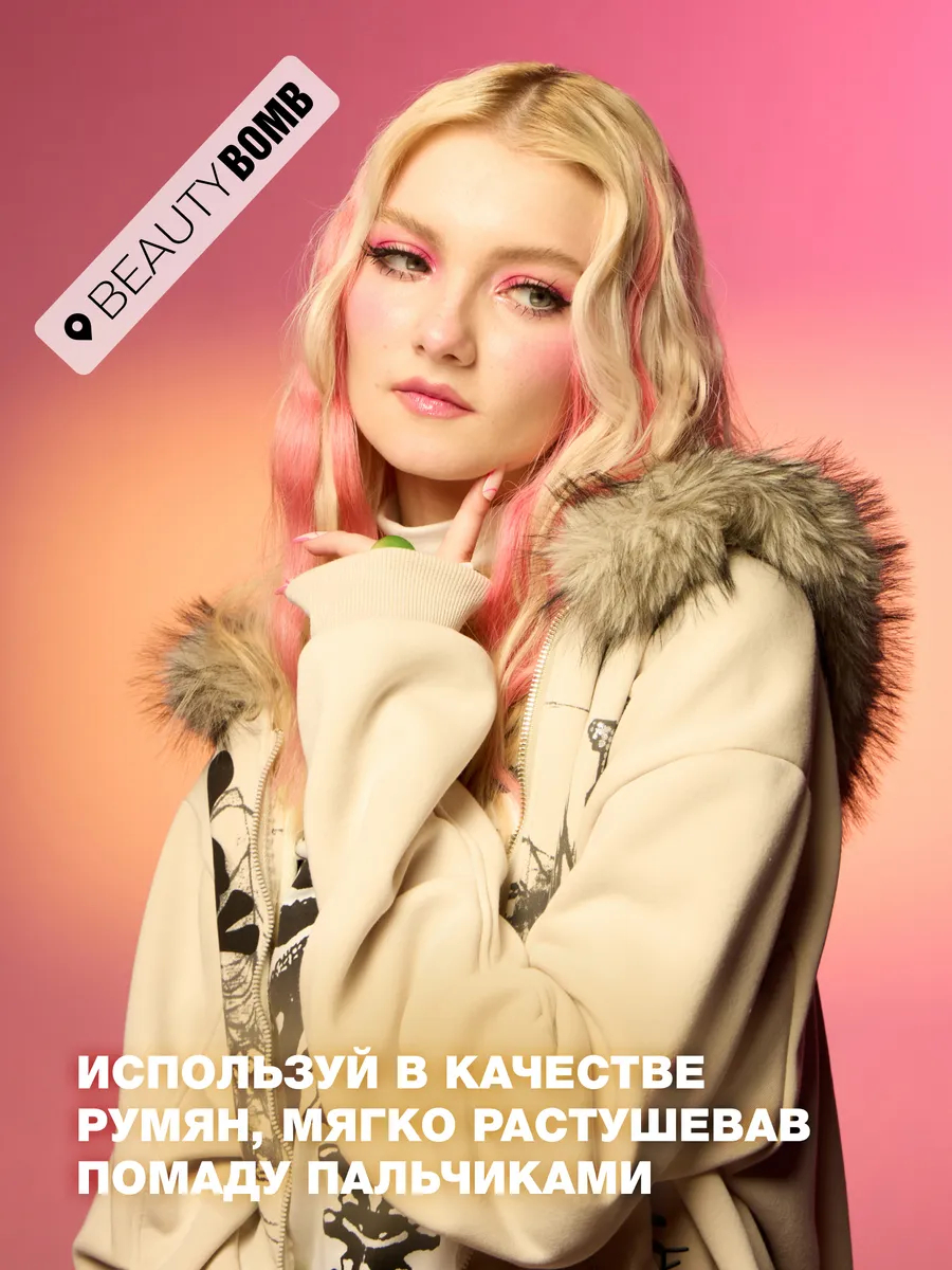 Нанесите в качестве помады или румян. Для более мягкого эффекта растушуйте пальцем или кистью.Состав