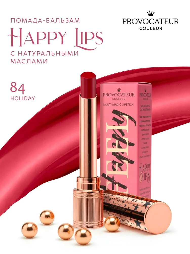 Когда цвет встречается с роскошным уходом, рождаются счастливые и красивые губы. Невероятный оттенок и интенсивный уход за губами с ценными маслами и витаминами – это помада-бальзам для губ "Happy Lips".