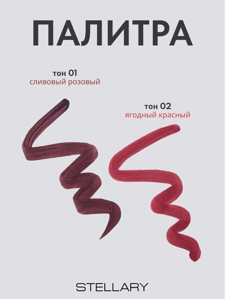 Продукт представлен в двух холодных оттенках: тон 01 – ягодный красный, тон 02 – сливовый розовый.