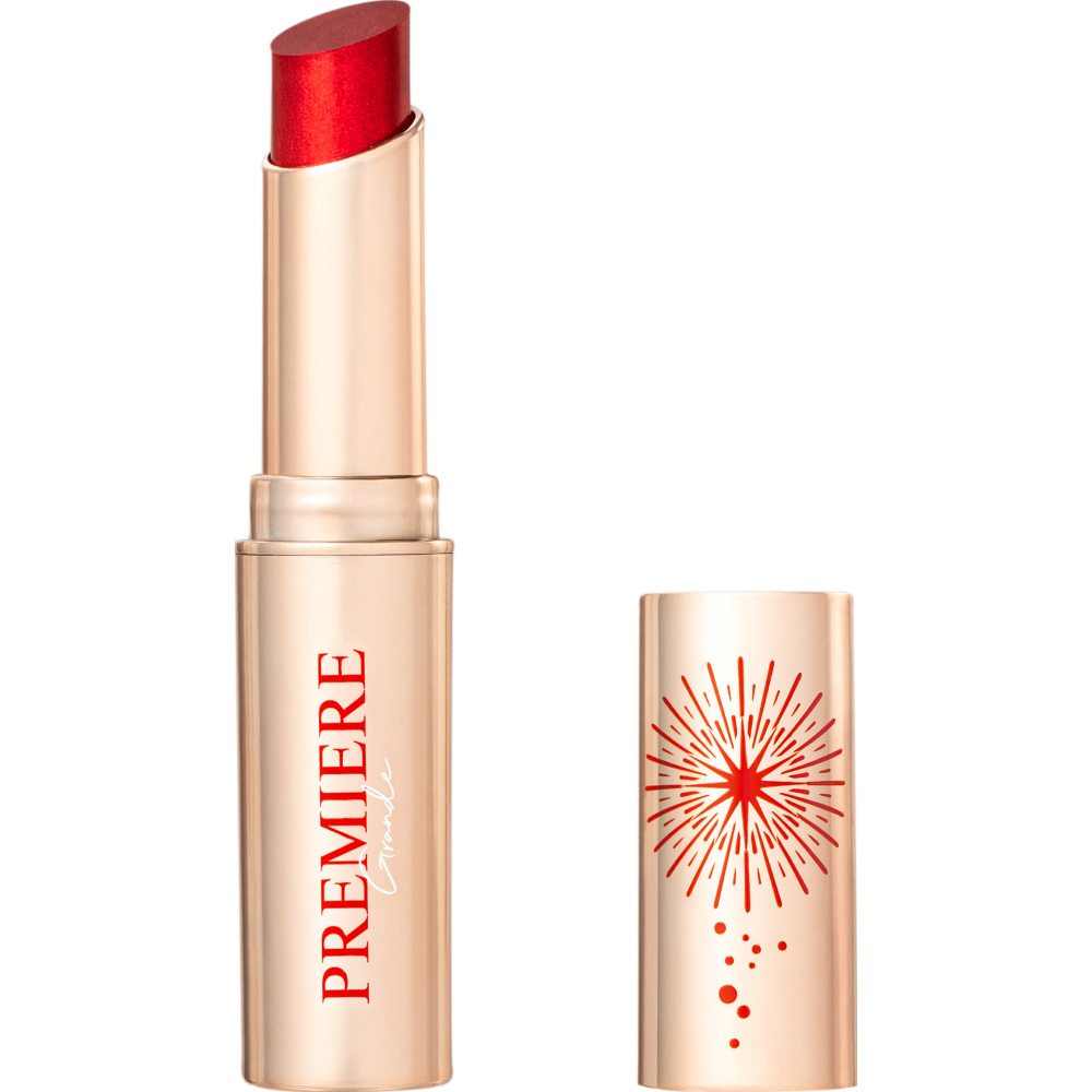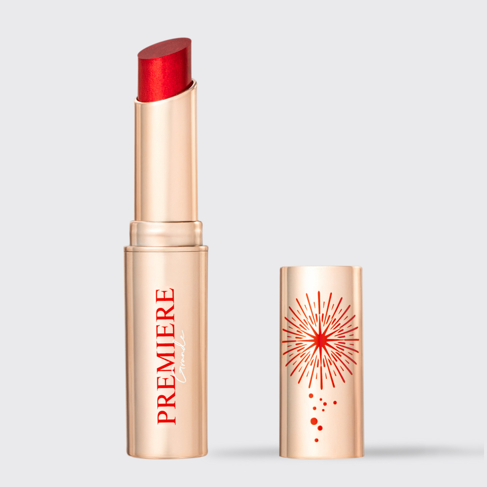 Ее губы, подчеркнутые помадой Grande Premiere, сияют как пламя. Кремовая текстура создает безупречное стойкое покрытие и интенсивный блеск, который будет с тобой на протяжении всего вечера.