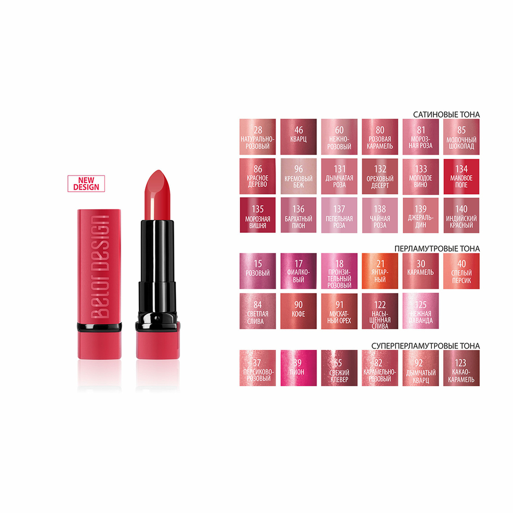 Цветовая палитра представлена широкой гаммой сатиновых, перламутровых и суперперламутровых оттенков.
