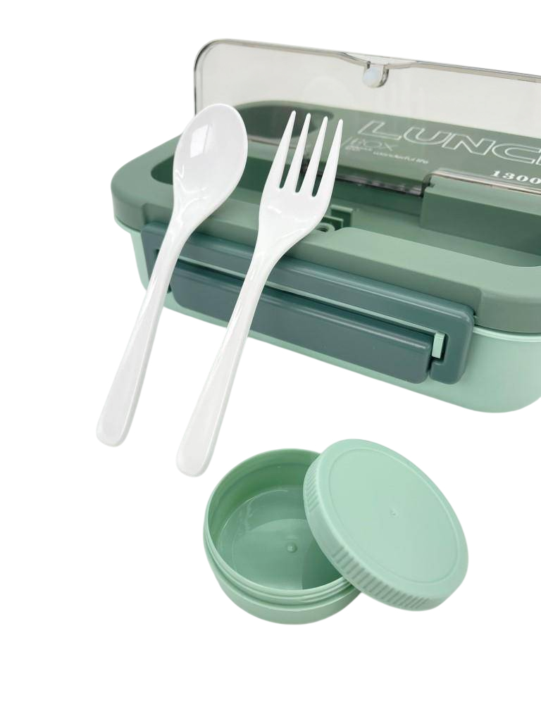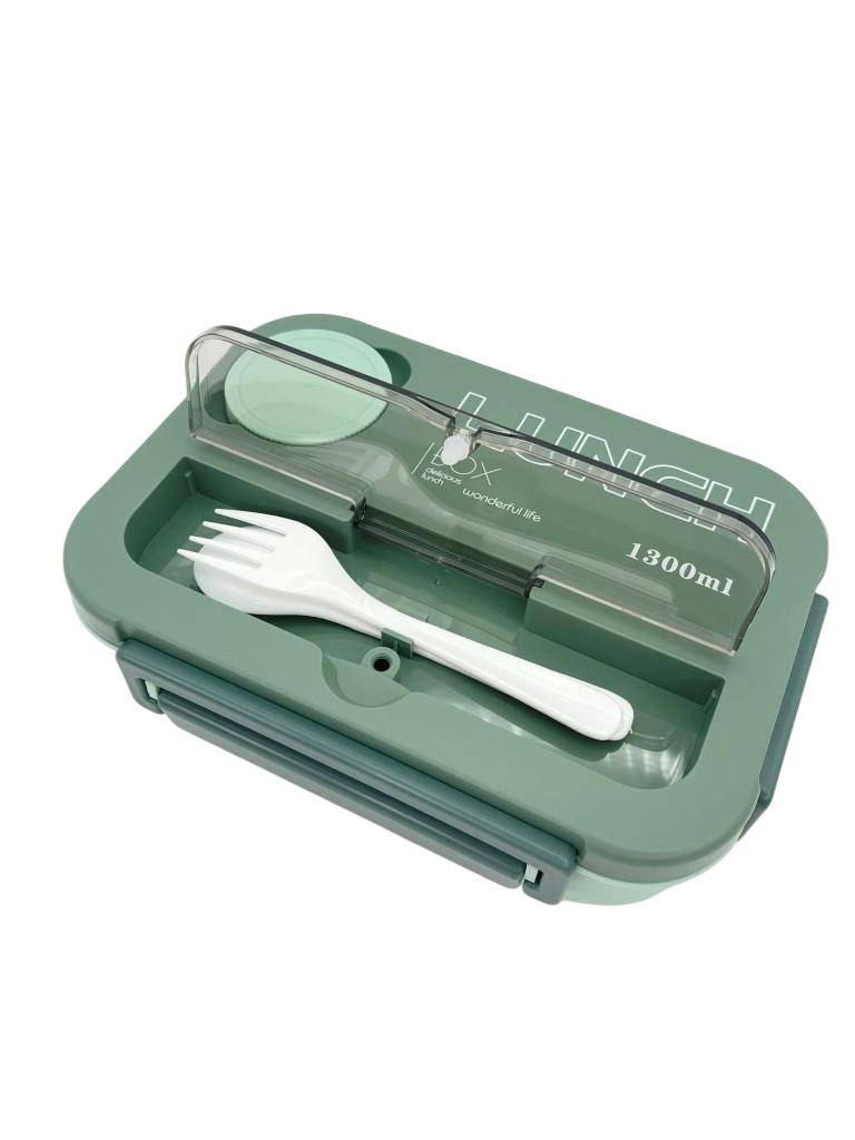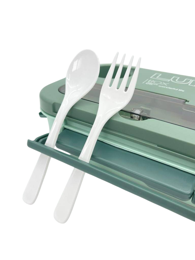 В комплект с ланч-боксом входят ложка и вилка.