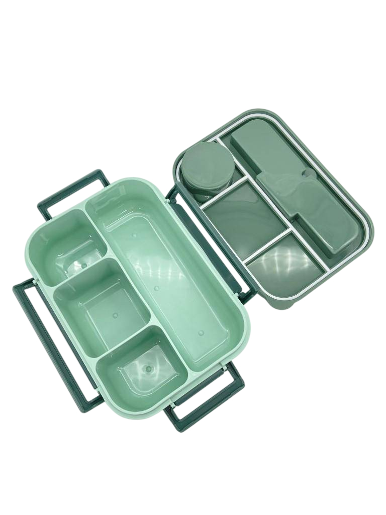 Ланч-бокс состоит из 1 отделения с четыремя отсеками, имеется отдельный отсек для столовых приборов и соусница. Герметичная крышка оснащена с клапаном для выпуска пара.