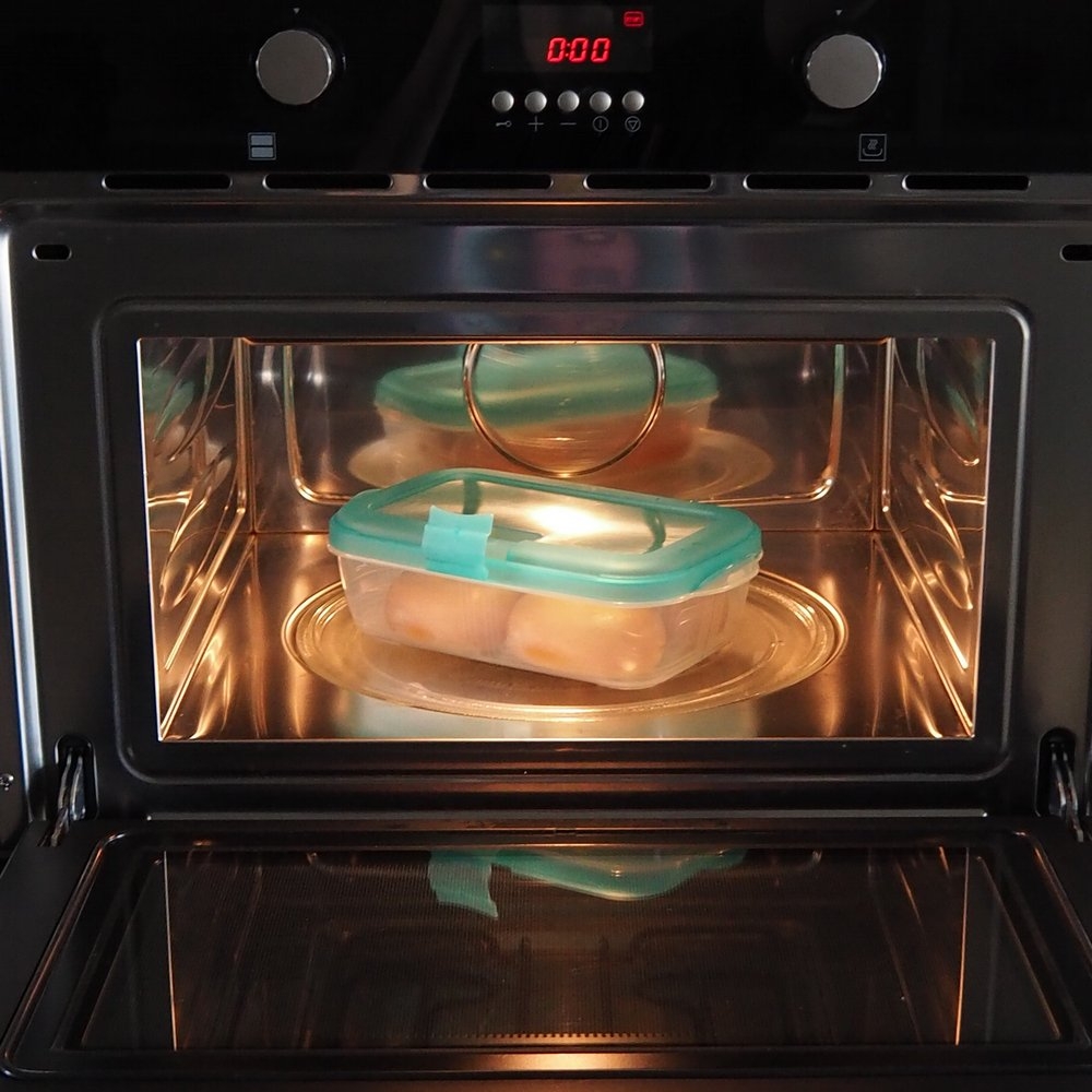 Перед тем, как поставить контейнер в СВЧ, откройте специальный клапан на крышке.