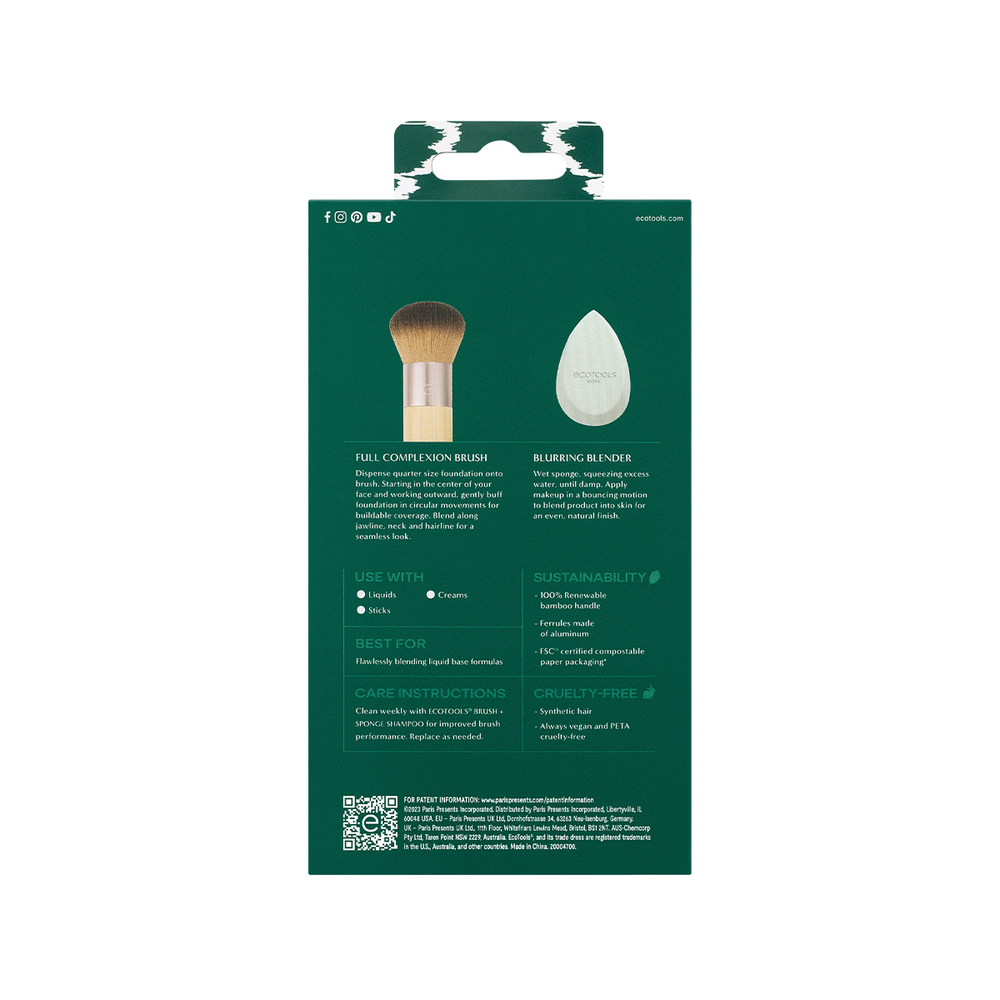 Дуэт кисти и спонжа для безупречного тона лица. В наборе – компактная пушистая кисть для тона с эффектом аэрографа и новый ультрамягкий спонж для естественной растушевки с полуматовым финишем. Бьюти-инструменты подходят для работы с жидкими и кремовыми тональными основами, румянами, консилерами и скульптурирующими средствами.