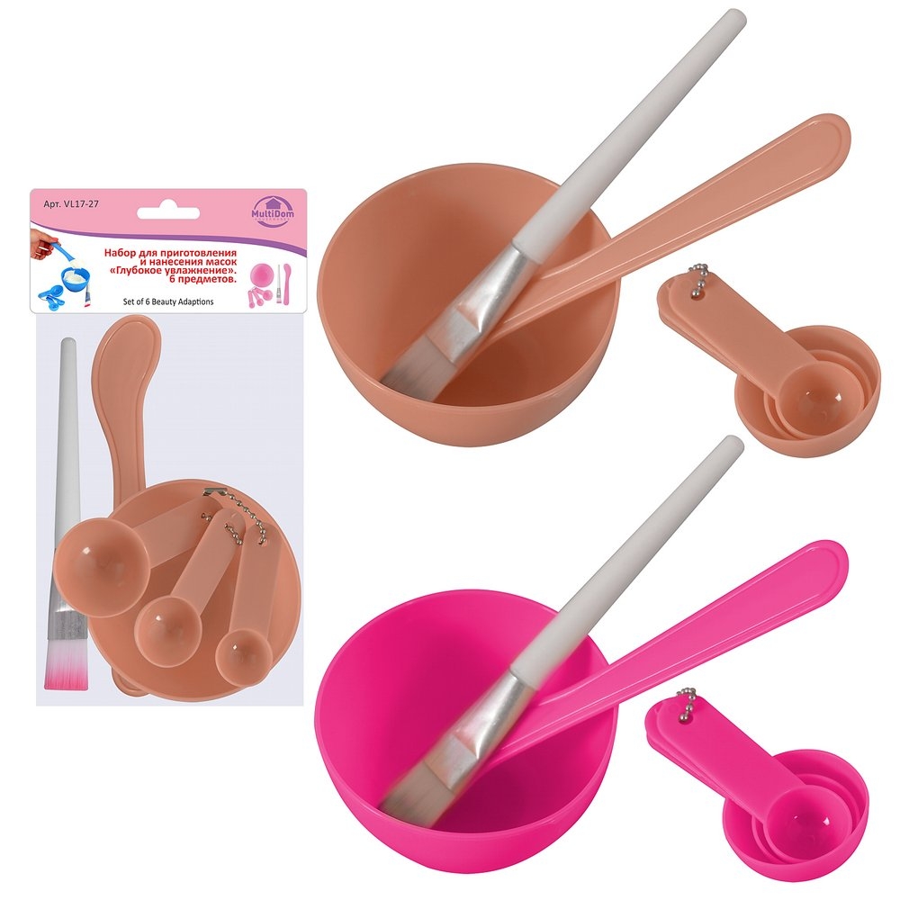 Любителям и ценителям здоровой и ухоженной кожи этот набор поможет поддерживать её в идеальном состоянии. Он удобен как для приготовления, так и для нанесения масок, поскольку включает в себя ёмкость для смешивания, кисть для нанесения масок, шпатель и три мерных ложечки. Объём чаши подразумевает разведение маски достаточной только для одного раза, не предназначен для хранения косметических средств. Мерные ложки позволят вам точно отмерить необходимое количество вещества для приготовления маски. С помощью шпателя необходимые ингредиенты вы сможете перемешать и нанести на кожу, а кисточка обеспечит вам равномерный слой маски. Перед первым и после каждого использования промыть в проточной воде, просушить.