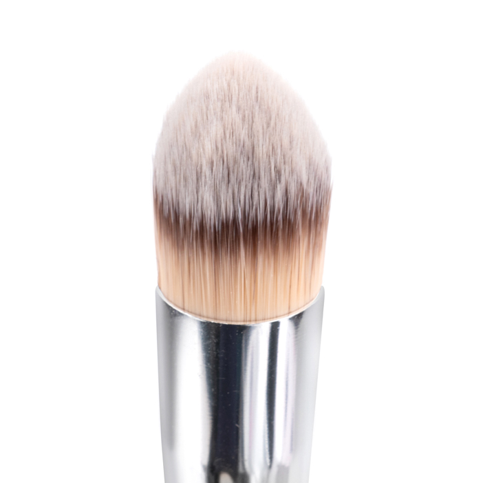 Специальная факелообразная форма кисти с плотным ворсом подходит для моделирования лица, для расстановки световых акцентов, стирания границ на скулах после нанесения румян или бронзера, распределения рассыпчатых текстур.