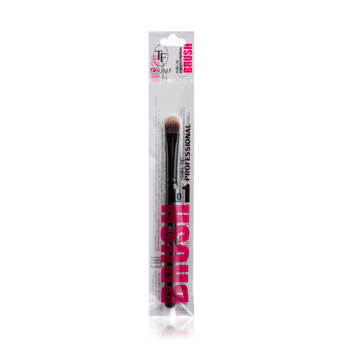 Большая плоская кисть с плотным ворсом подойдет для нанесения базового цвета на все веко до брови.