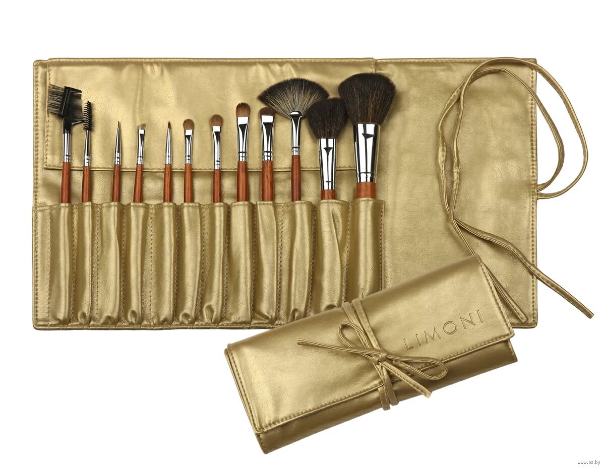 Limoni Professional Mahagony – набор профессиональных кистей для макияжа, включающий кисти для пудры, румян, теней, помады и щеточки для бровей и ресниц. Набор состоит из 12 предметов и золотистого чехла.