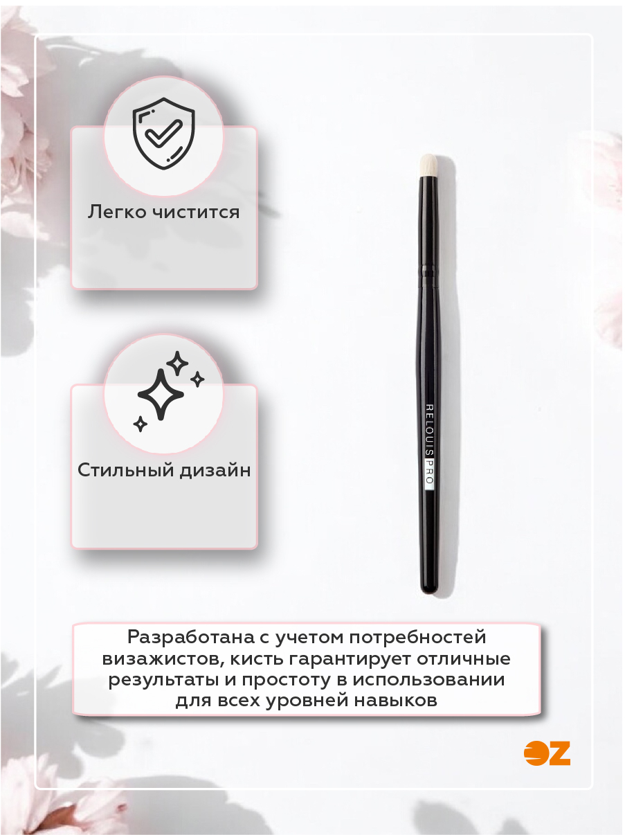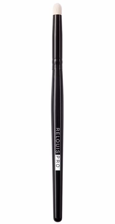 Небольшой размер кисти и округлая форма подойдут для точечной проработки макияжа глаз: обозначьте тенями нижнее веко, затемните внешний уголок или растушуйте карандаш вдоль ресничного ряда.