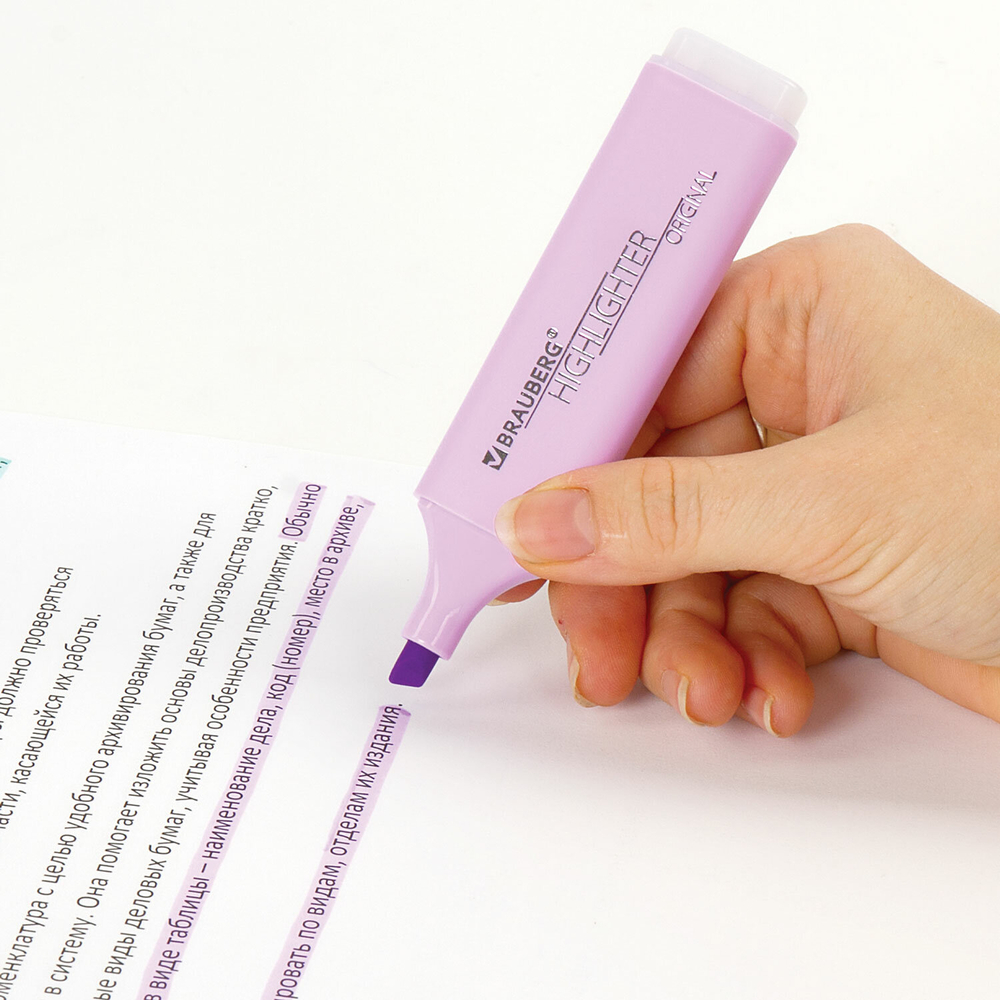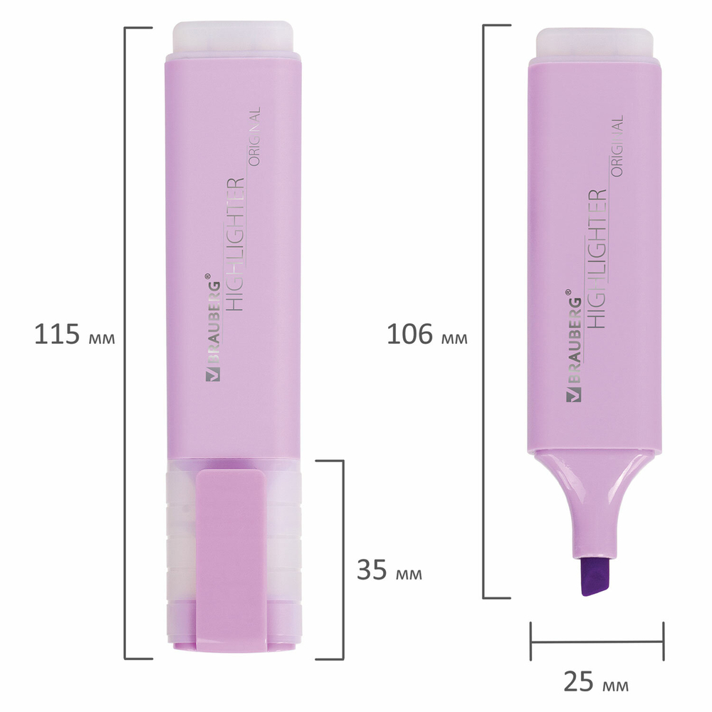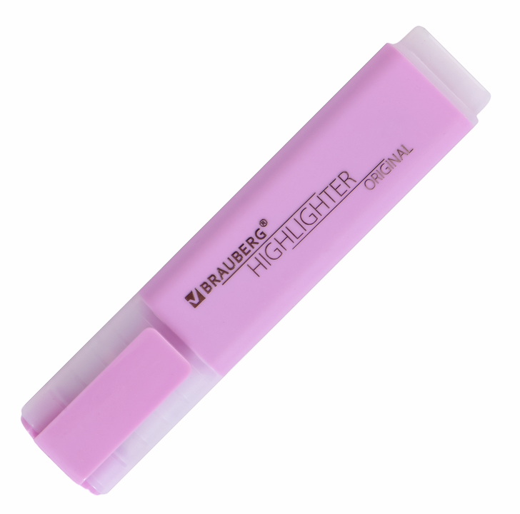 Текстовыделитель лавандового цвета имеет плоскую форму корпуса, диаметр которого 25 мм. Особый пастельный оттенок создает мягкие переходы и позволяет равномерно выделить текст. Скошенный наконечник имеет толщину линии письма от 1 до 5 мм, что обеспечивает удобство при работе с текстом, напечатанным мелким шрифтом, или таблицами.