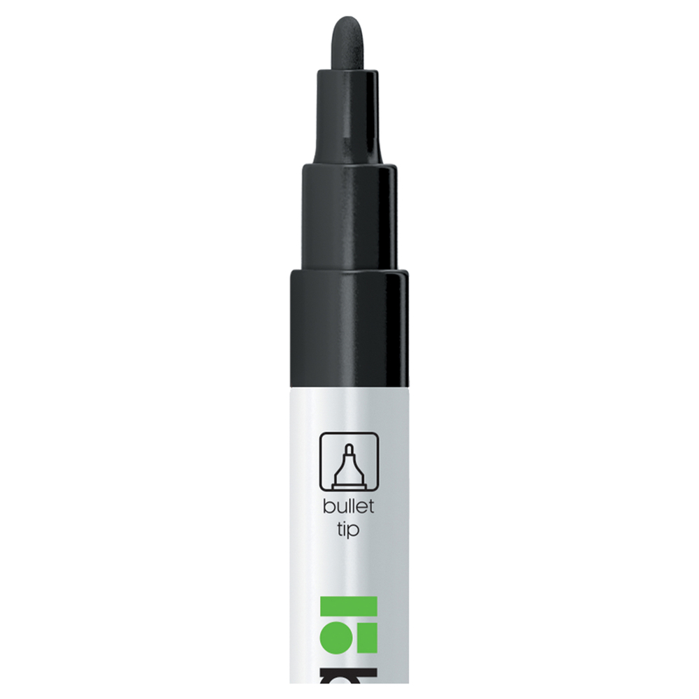 Используется для работы на металлических, деревянных, стеклянных и пластиковых поверхностях. Закругленный пишущий узел. Металлический корпус.