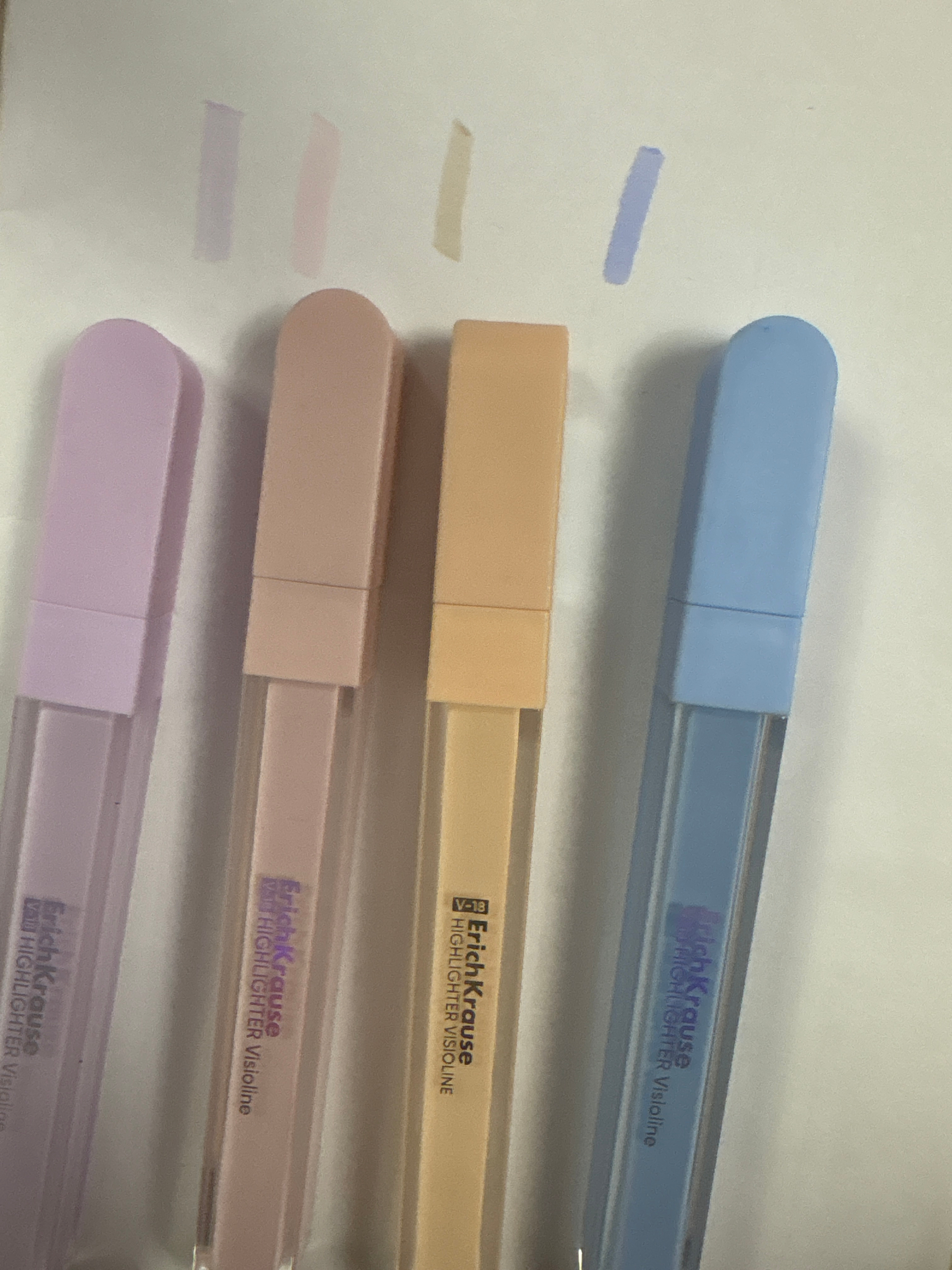 Широкая часть наконечника 4.5 мм удобна для выделения текста, а тонкая 0.5 мм – для подчёркивания. Цвет колпачка соответствует цвету чернил.