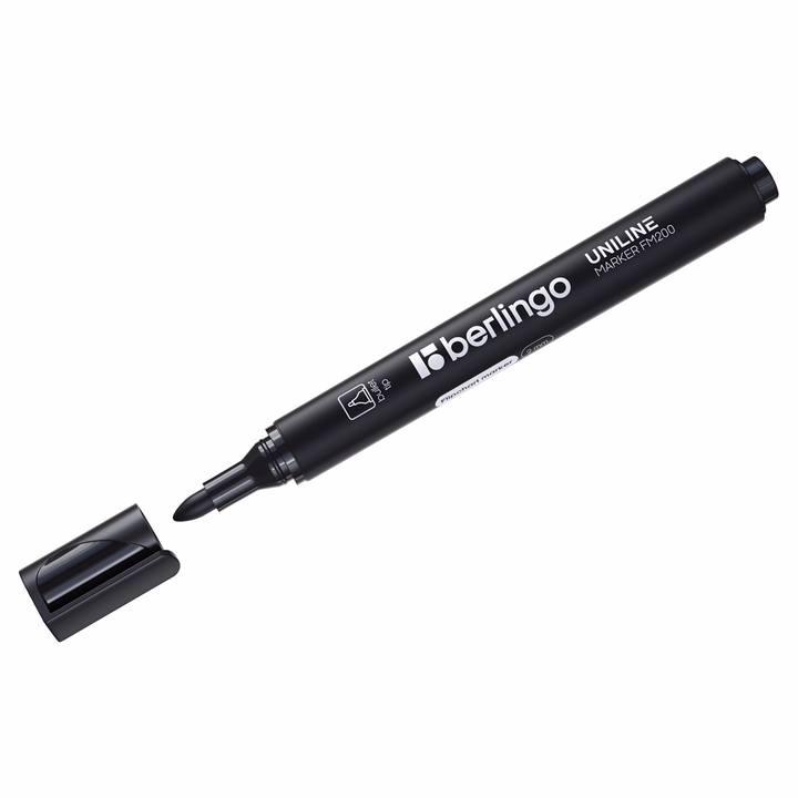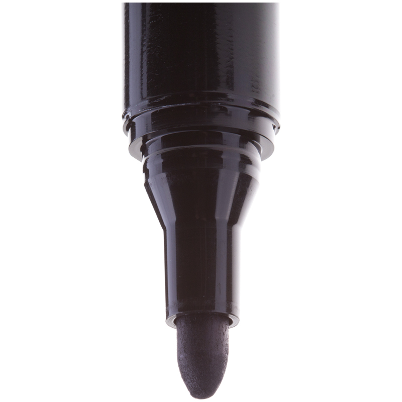 Закругленный пишущий узел. Ширина линии – 2 мм. Длина непрерывной линии – 600 м. Плотный колпачок с клипом предотвращает высыхание. Цвет колпачка соответствует цвету чернил.