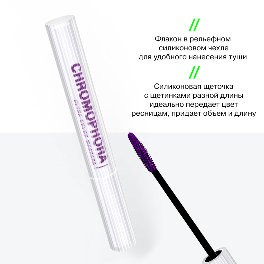 "Chromophora" – ультрацветная тушь для ресниц, яркие оттенки которой вдохновлены исследованиями хромофорной теории цветовых индикаторов. Именно хромофор обуславливает цвет химических соединений и отвечает за восприятие и яркость цвета в природе.