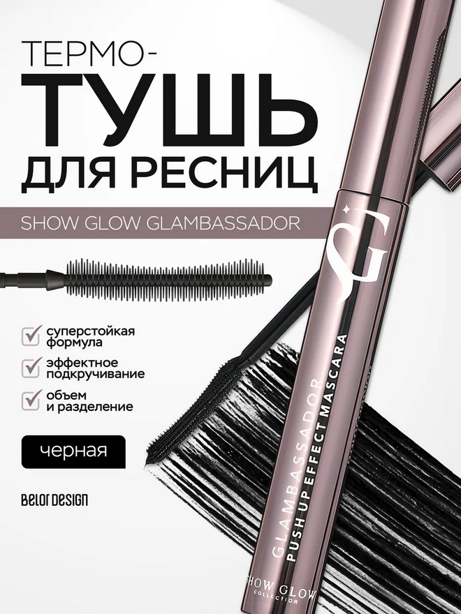 Личный стилист по ресничкам Show Glow Glambassador стойко сопроводит ваш дневной и вечерний макияж, главный секрет – не медлить с нанесением.