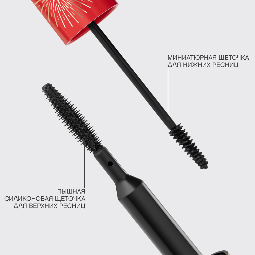 Два в одном: совершенство в каждой щеточке! Пышная силиконовая щеточка для верхних ресниц придает головокружительный объем, утолщая волоски от корней до самых кончиков. А миниатюрная щеточка для нижних ресниц мастерски прокрашивает даже самые тонкие волоски, аккуратно разделяя их без комочков и склеивания.