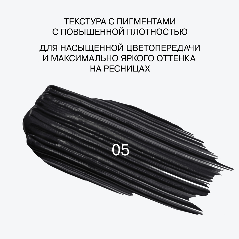 В туши использованы специальные пигменты с повышенной плотностью, учитывающие особенности восприятия цвета сетчаткой человеческого глаза. Благодаря им оттенок на ресницах будет максимально ярким. Удобная силиконовая щеточка с щетинками разной длины идеально прокрашивает ресницы, передает им цвет, придает объем и длину.