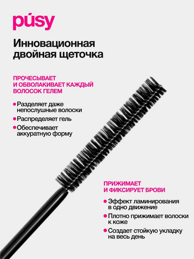 Инновационная двусторонняя щеточка обеспечивает равномерное нанесение и укладывает даже самые непослушные волоски.