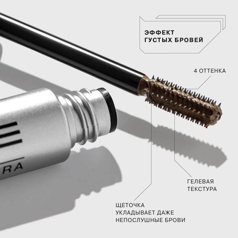 Тушь с гелево-кремовой текстурой идеально прокрашивает волоски и визуально делает брови гуще. Благодаря технологии Zerotime тушь фиксируется на бровях сразу после нанесения, облегчая процесс укладки и обеспечивая максимальную фиксацию.
