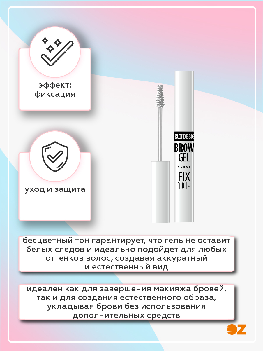 Бесцветная гелевая текстура аккуратно фиксирует каждый волосок, придаёт дополнительный блеск, повторяя ваш уникальный оттенок.