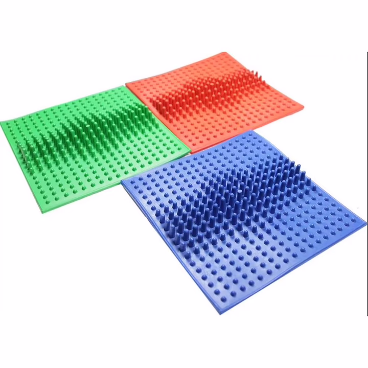 Коврик представляет собой вариант напольного покрытия с неоднородной поверхностью. Массажный эффект обеспечивается за счёт рельефных выступов, различающихся по высоте и диаметру. Благодаря им воздействие оказывается на каждый участок стопы по отдельности.
