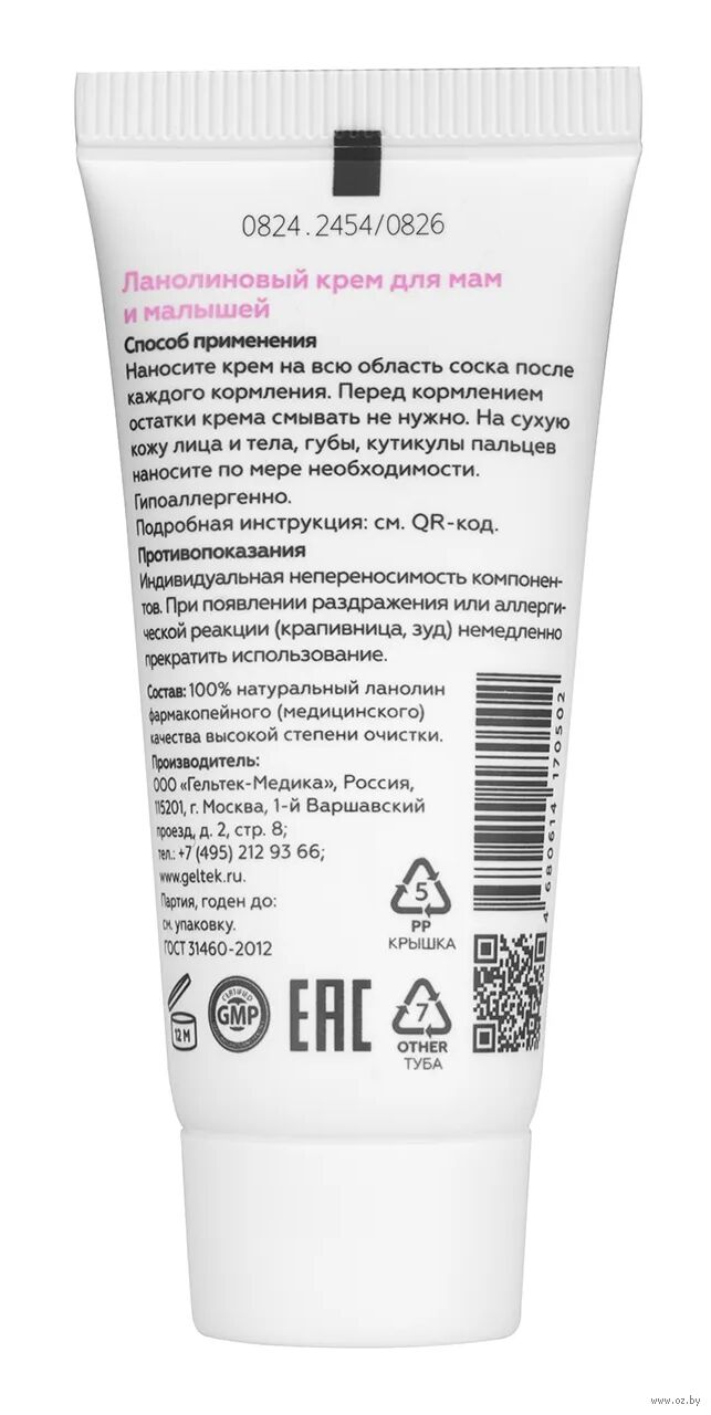 Наносите крем на всю область соска после каждого кормления. Перед кормлением остатки крема смывать не нужно.Состав