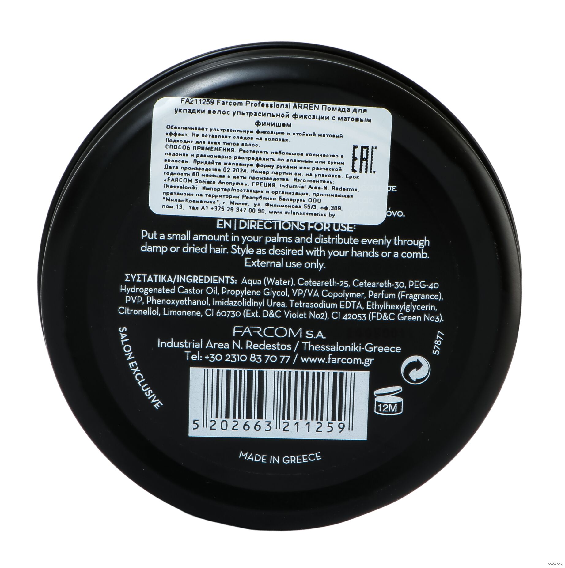 Разотрите небольшое количество в ладонях и равномерно распределите по влажным или сухим волосам. Придайте желаемую форму укладки руками или расческой.Состав