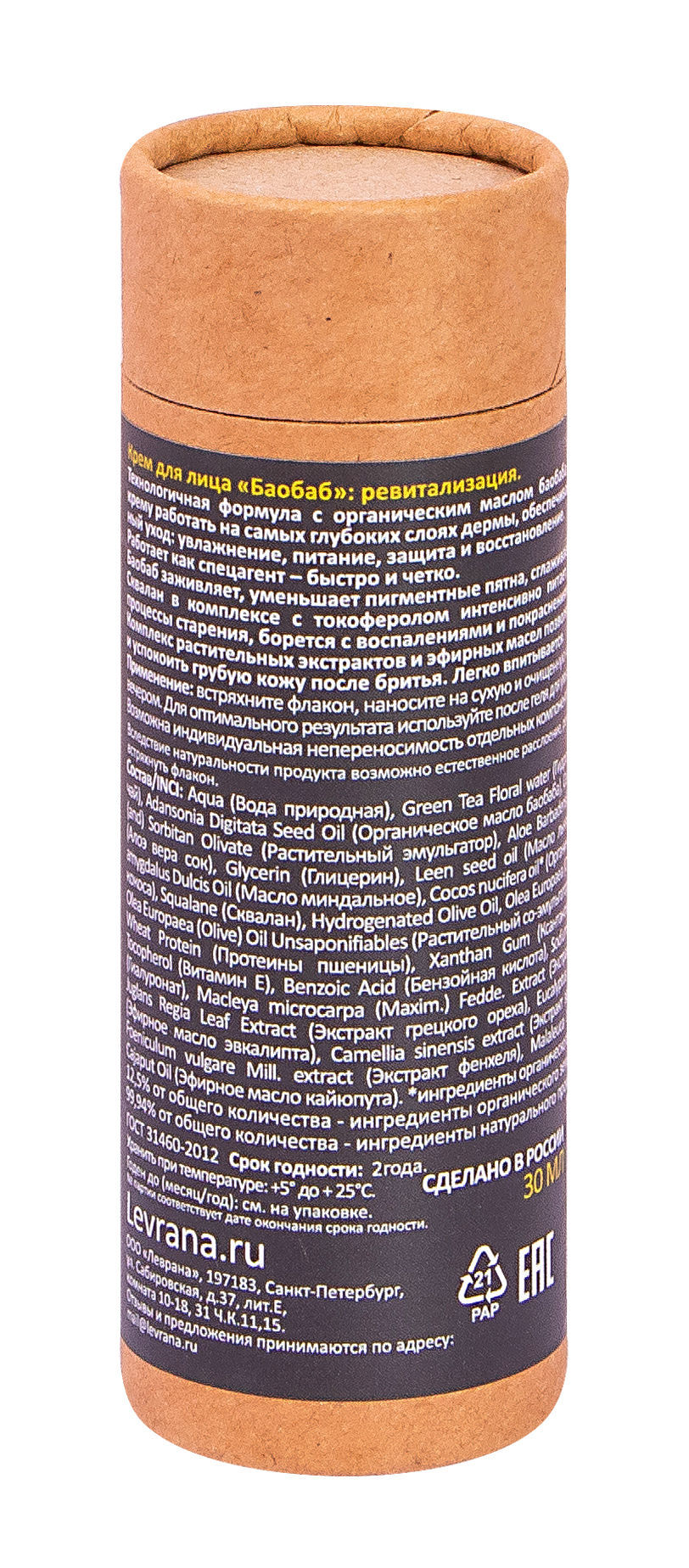 Технологичная формула с органическим маслом баобаба позволяет крему работать на самых глубоких слоях дермы, обеспечивая полноценный уход: увлажнение, питание, защиту и восстановление.