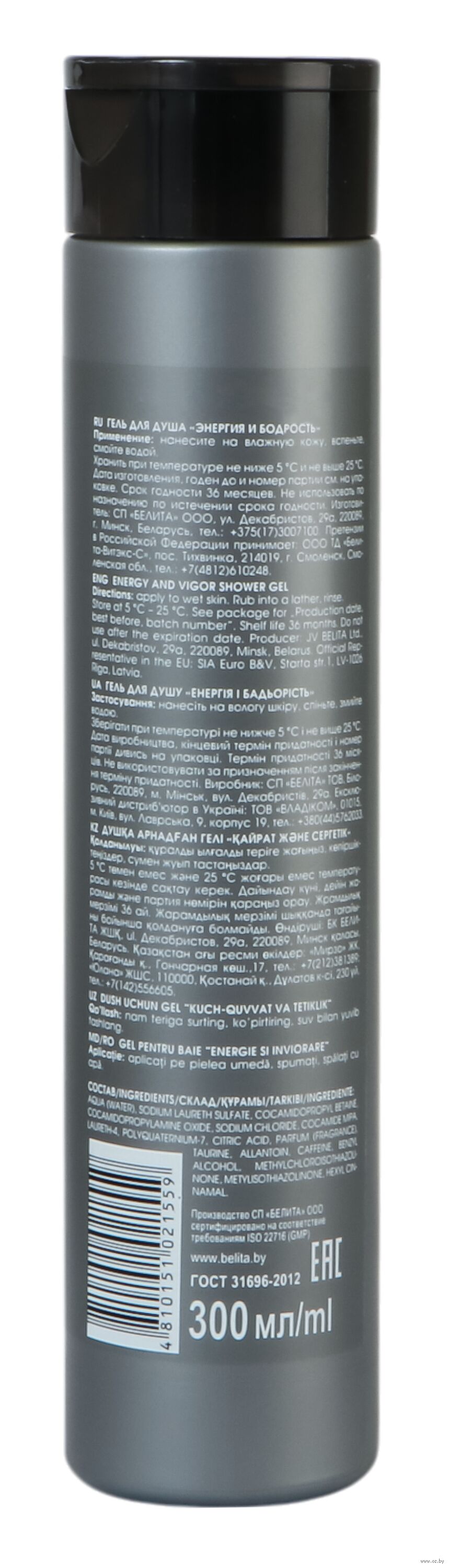 Заряжающий энергией гель для душа тщательно очищает кожу, не нарушая ее липидный баланс, дарит ощущение бодрости и свежести. Активные компоненты: аллантоин успокаивает кожу и снимает раздражение, увлажняет и поддерживает водный баланс кожи на необходимом уровне. Кофеин и таурин заряжают кожу энергией, тонизируют и укрепляют ее.