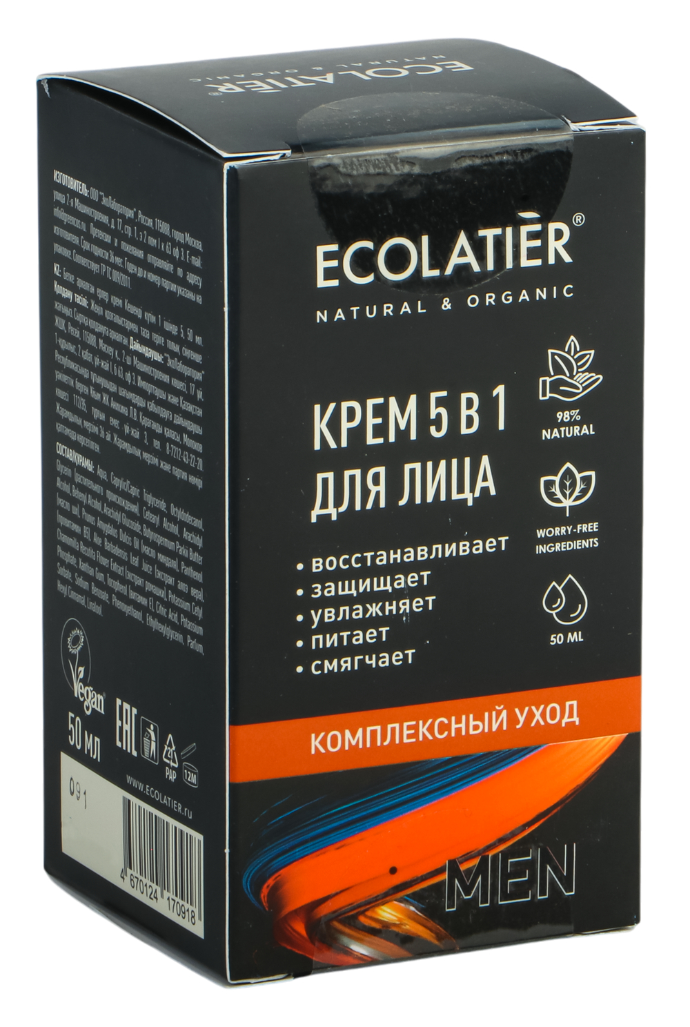 Крем для лица "Комплексный уход 5в1" с нежной текстурой быстро впитывается и обеспечивает необходимый уход за кожей: увлажняет, питает, смягчает, защищает и восстанавливает.