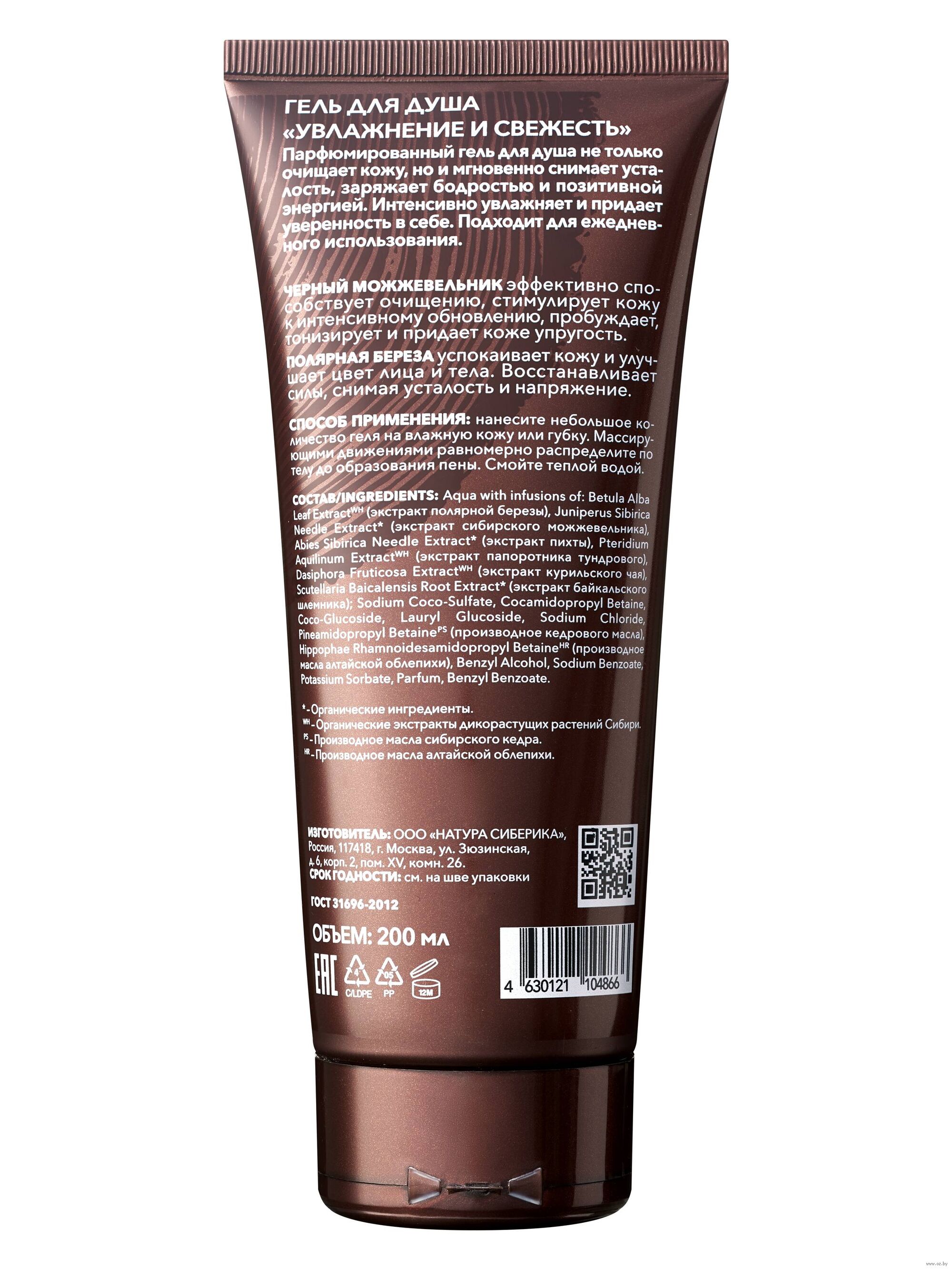 Aqua with infusions of: Betula Alba Leaf ExtractWH (экстракт полярной березы), Juniperus Sibirica Needle Extract* (экстракт сибирского можжевельника), Abies Sibirica Needle Extract* (экстракт пихты), Pteridium Aquilinum ExtractWH (экстракт папоротника тундрового), Dasiphora Fruticosa ExtractWH (экстракт курильского чая), Scutellaria Baicalensis Root Extract* (экстракт байкальского шлемника); Sodium Coco-Sulfate, Cocamidopropyl Betaine, Coco-Glucoside, Lauryl Glucoside, Sodium Chloride, Pineamidopropyl BetainePS (производное кедрового масла), Hippophae Rhamnoidesamidopropyl BetaineHR (производное масла алтайской облепихи), Benzyl Alcohol, Sodium Benzoate, Potassium Sorbate, Parfum, Benzyl Benzoate. (*) – органические ингредиенты (WH) – органические экстракты дикорастущих растений Сибири (PS) – производное масла сибирского кедра (HR) – производное масла алтайской облепихи.Мы используем файлы cookie для обеспечения удобства работы с сайтом и его контакта с пользователем.